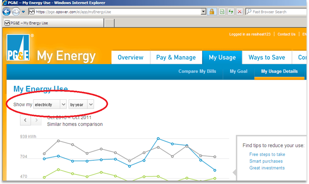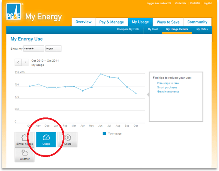 Next click on My Usage tab and click on Track, compare and monitor your energy usage and costs.